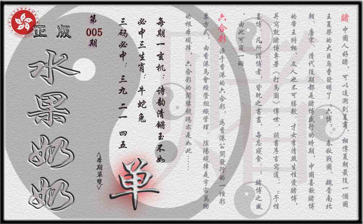 005期单双攻略(正版)[图]