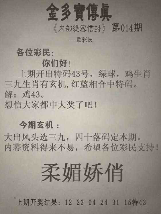 014期金多宝传真[图]