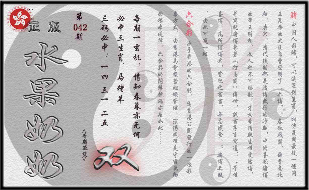 042期单双攻略(正版)[图]