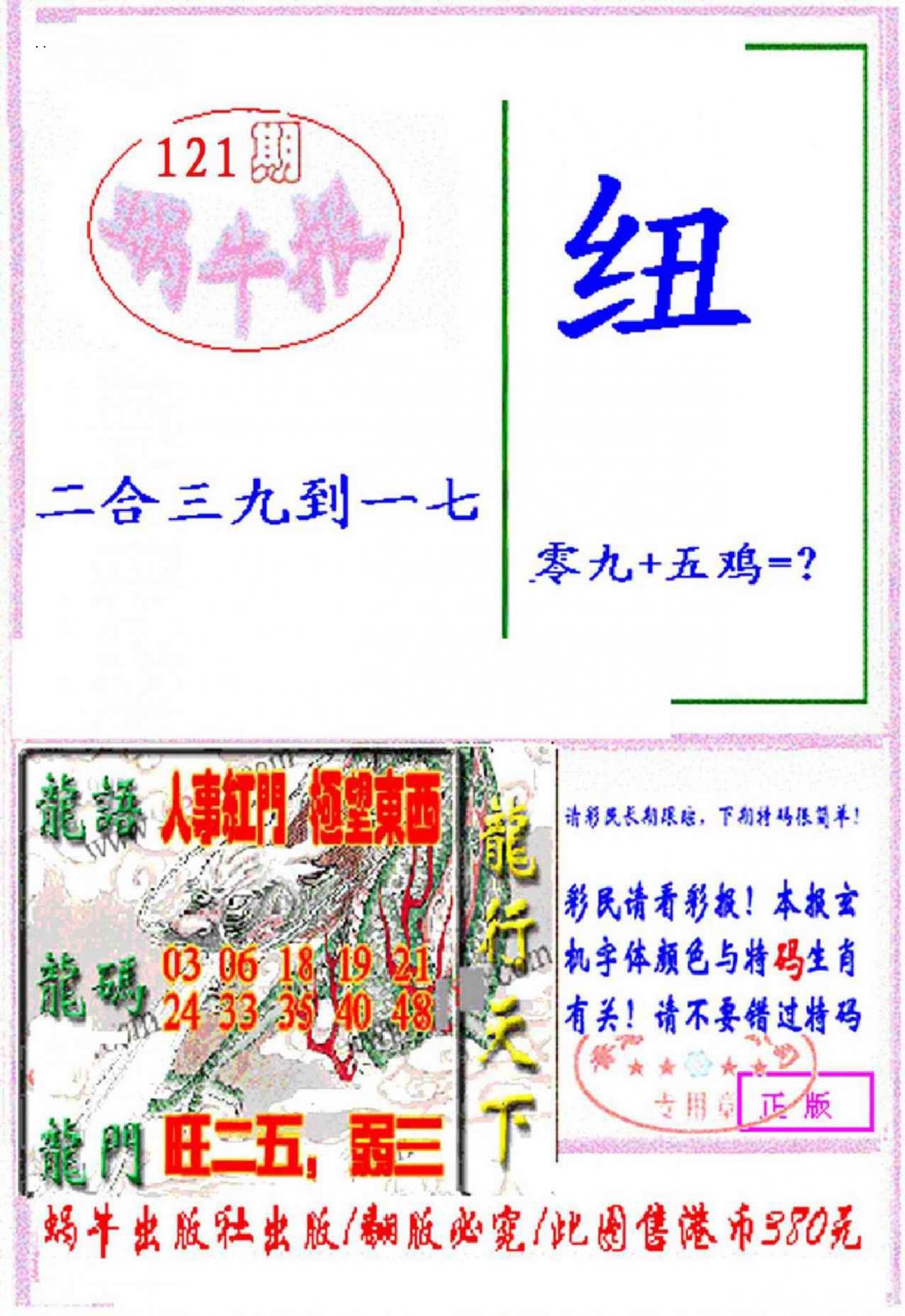 上一篇:121期九龙特新刊[图]