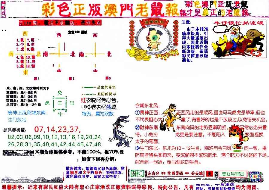 130期彩色正版澳门老鼠报[图]
