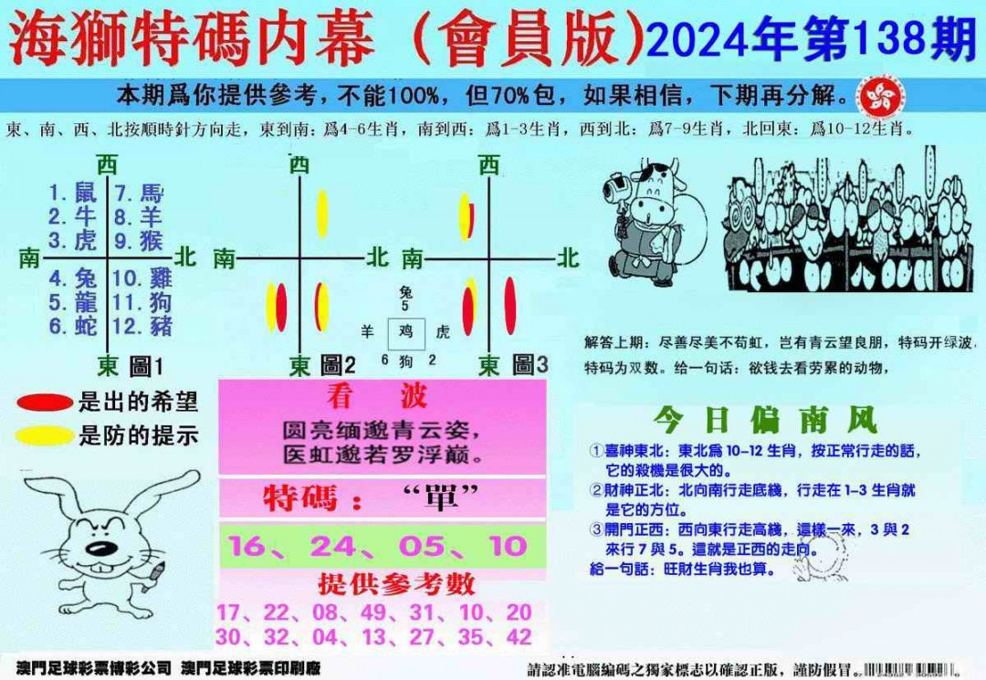 138期另版海狮特码内幕报[图]