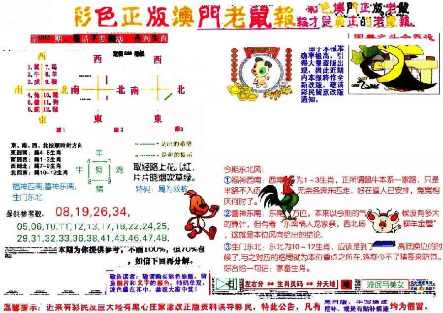 003期彩色正版澳门老鼠报[图]