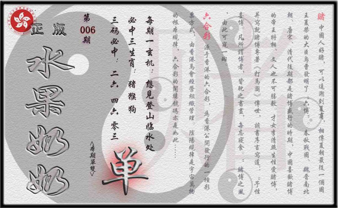 006期单双攻略(正版)[图]