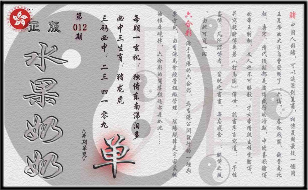 012期单双攻略(正版)[图]