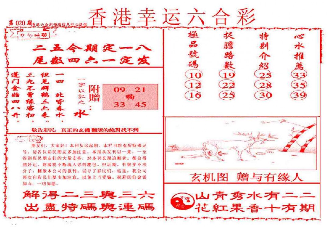 020期幸运六合彩(信封)[图]
