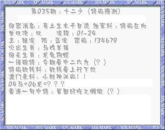 035期十二少(特码预测)[图]