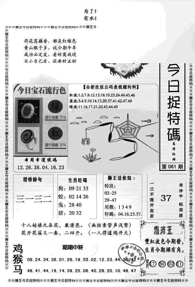 061期狮王今日抓特码[图]