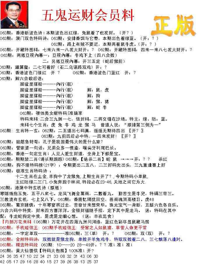 063期正版五鬼运财会员料[图]