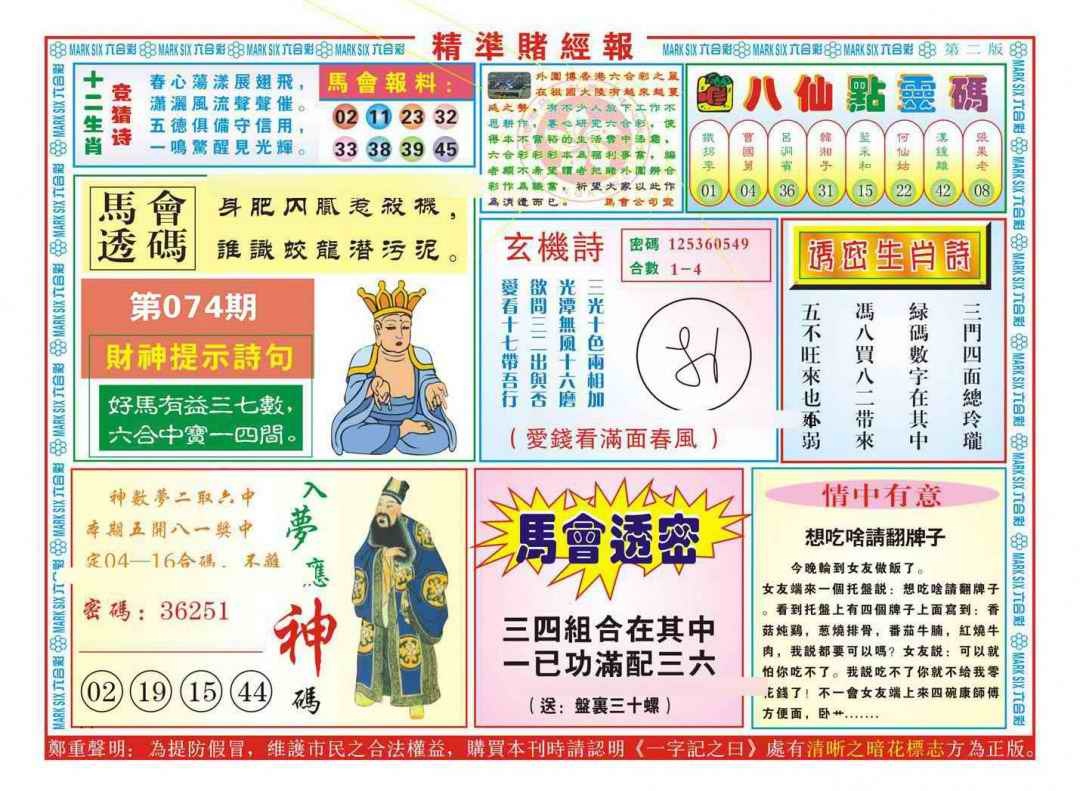 074期精准赌经报B(新图)[图]