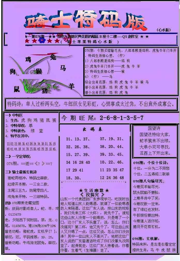 076期另骑士特码版[图]