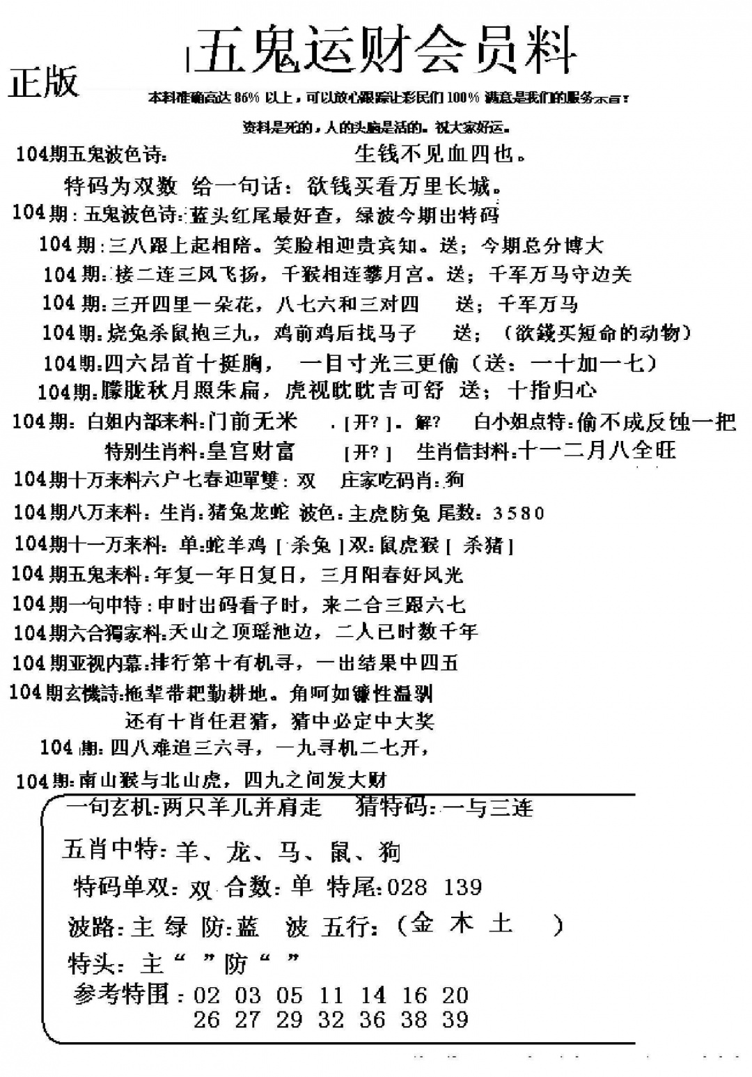 104期五鬼运财会员料[图]